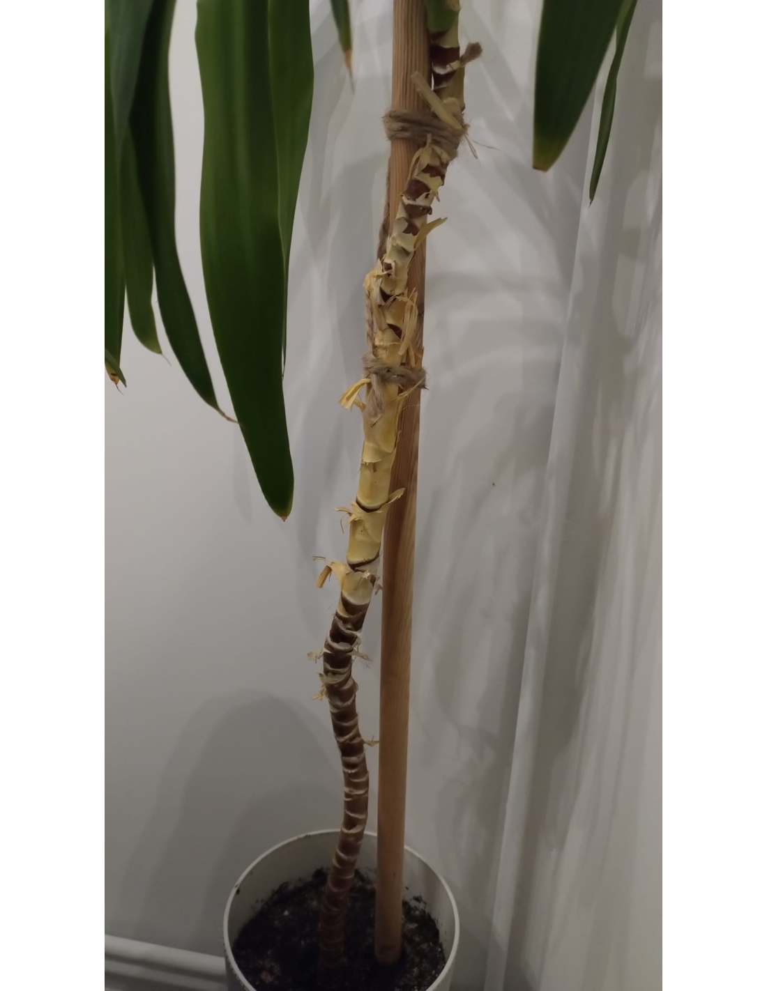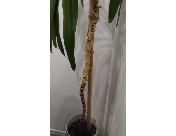 Befestigen Sie die Pflanze mit Gartenband, Schnur oder Draht am Stab.
