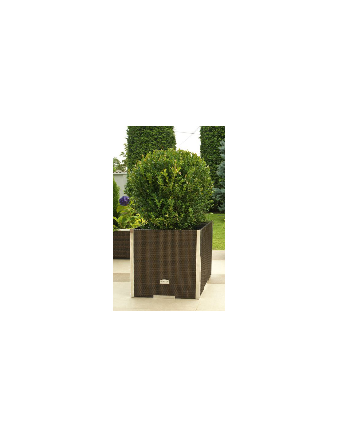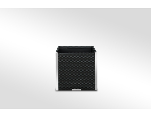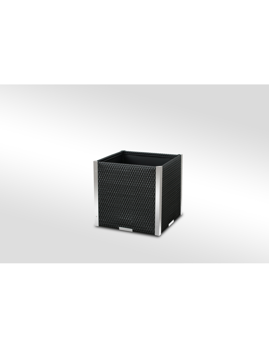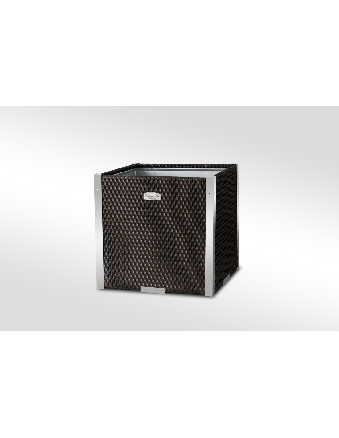 Das Innere des Pflanzkübels ist aus verzinktem Blech gefertigt, was für zusätzliche Stabilität und Langlebigkeit sorgt. Die dekorativen Leisten bestehen aus poliertem Aluminium und verleihen dem Produkt ein modernes und elegantes Aussehen.