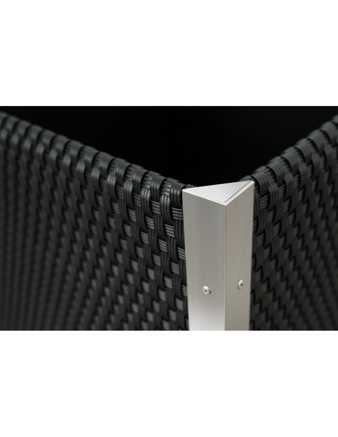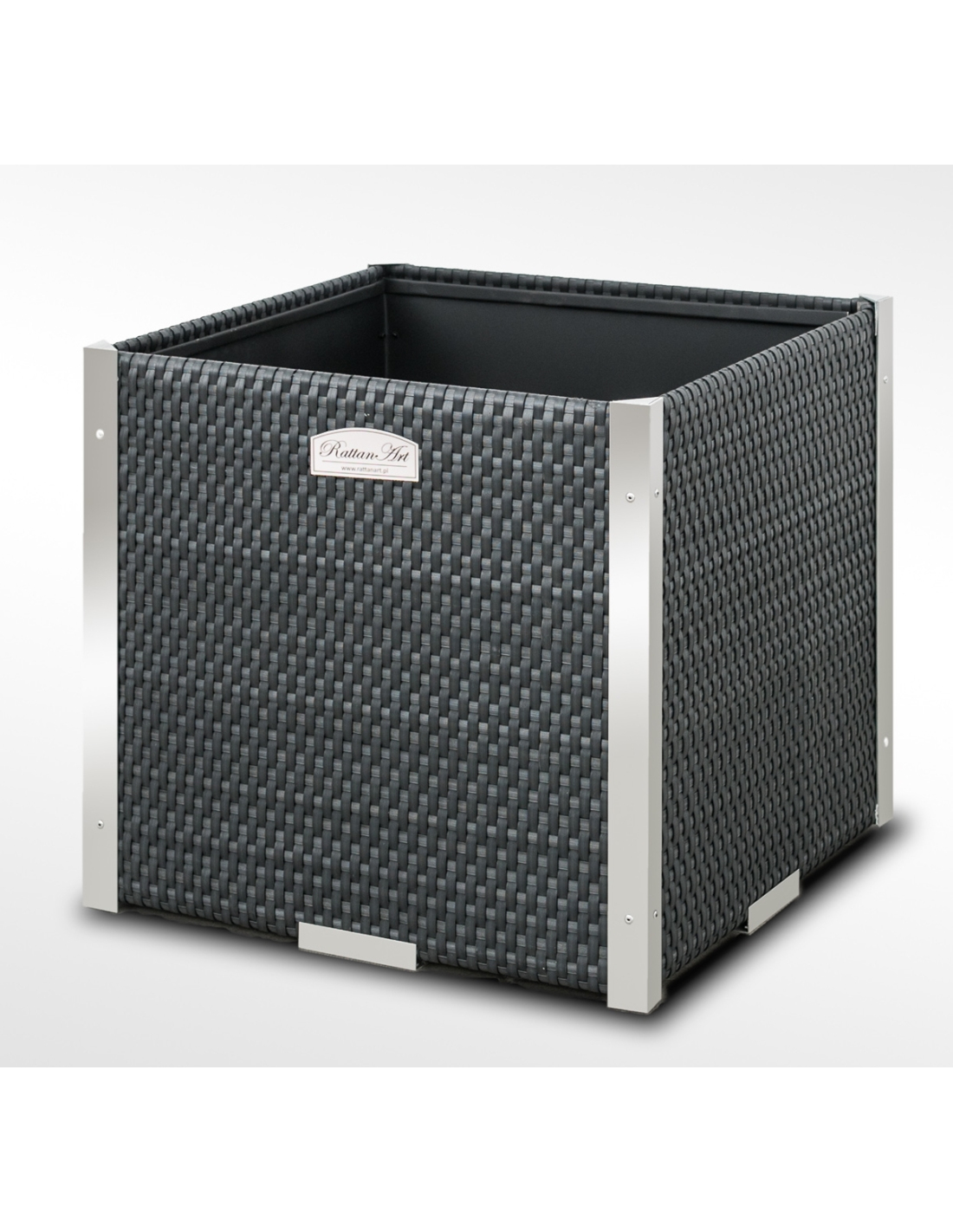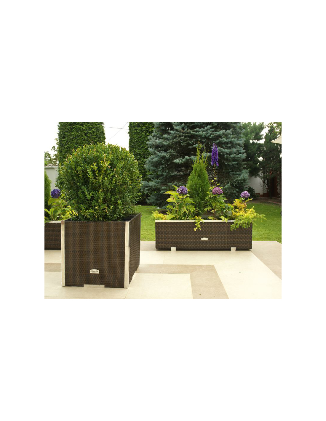 Das Innere des Pflanzkübels ist aus verzinktem Blech gefertigt, was für zusätzliche Stabilität und Langlebigkeit sorgt. Die dekorativen Leisten bestehen aus poliertem Aluminium und verleihen dem Produkt ein modernes und elegantes Aussehen.