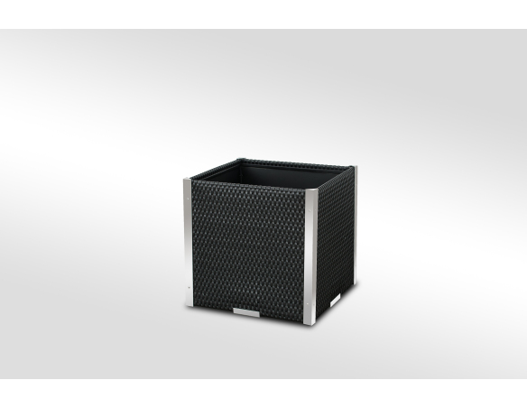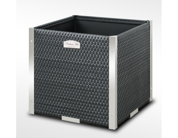 Pflanzkübel mit Polyrattanbeschichtung und dekorativen Aluminiumleisten