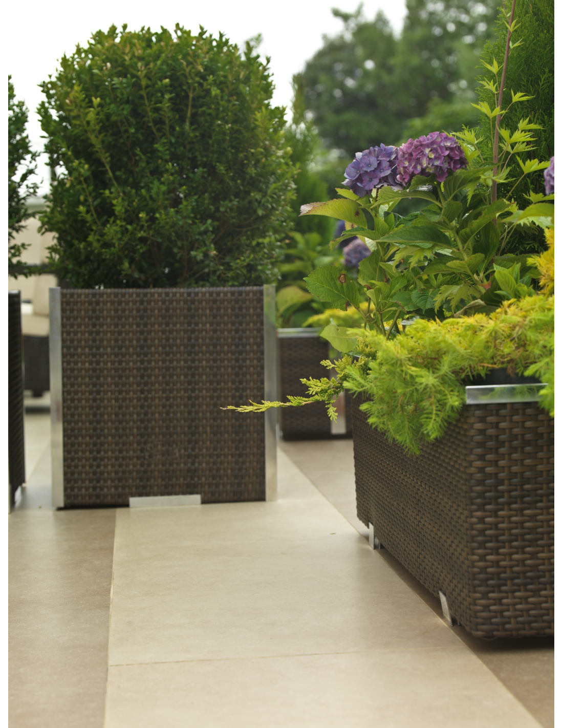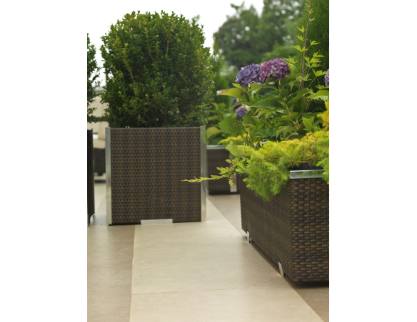 Der Pflanzkübel besteht aus geflochtenem Polyrattan, einem hochwertigen Material, das witterungsbeständig ist und sich sowohl für den Innen- als auch für den Außenbereich zu jeder Jahreszeit eignet.