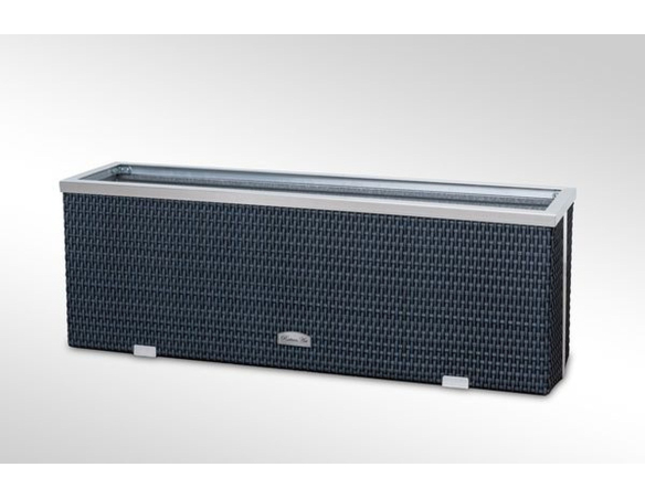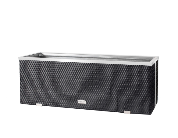 Pflanzkübel mit Polyrattanbeschichtung und dekorativen Aluminiumleisten