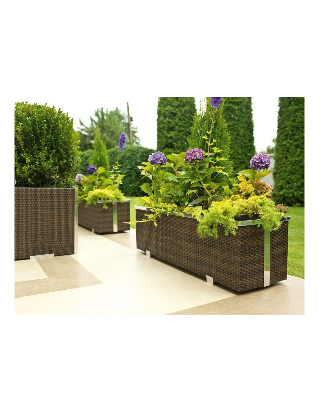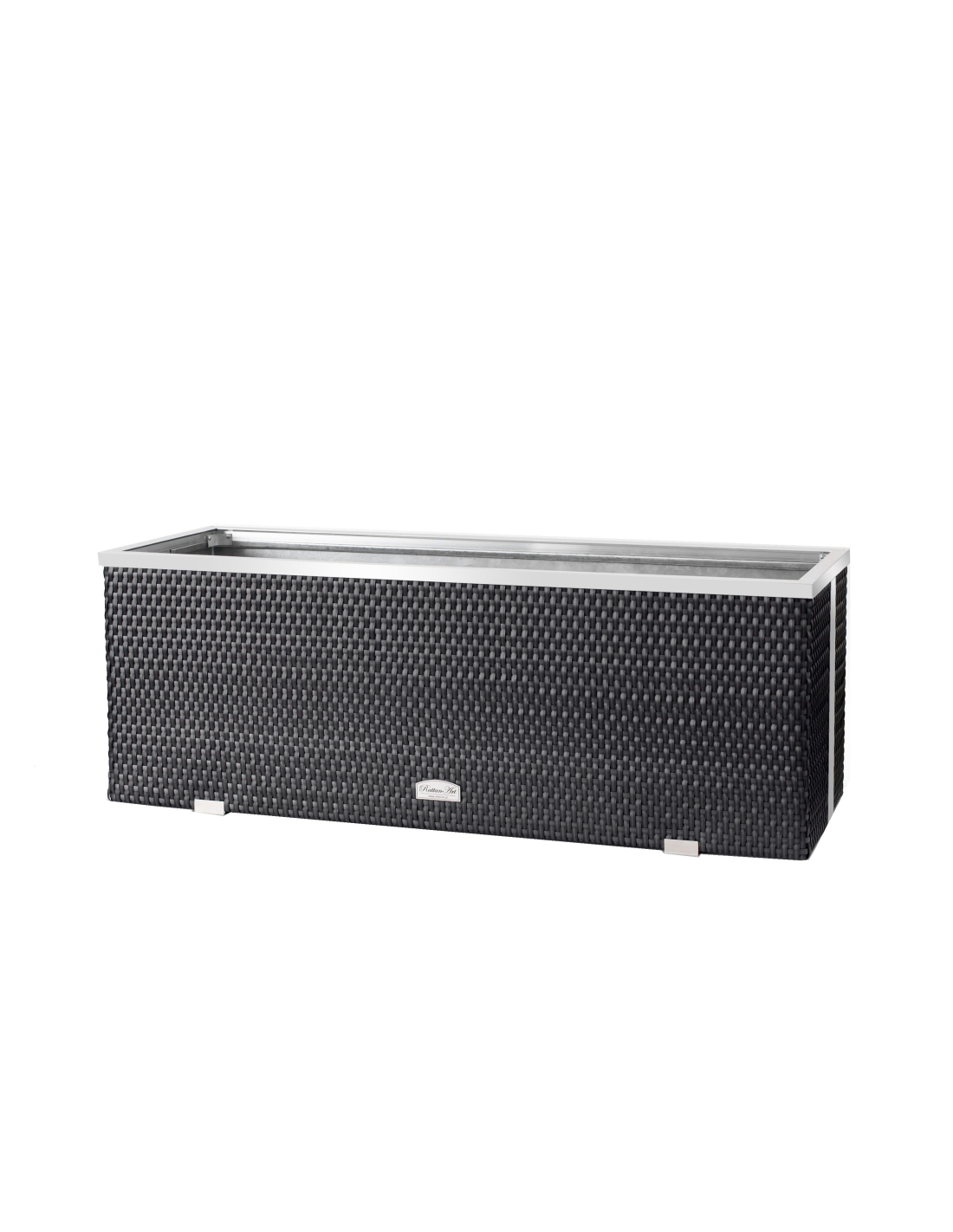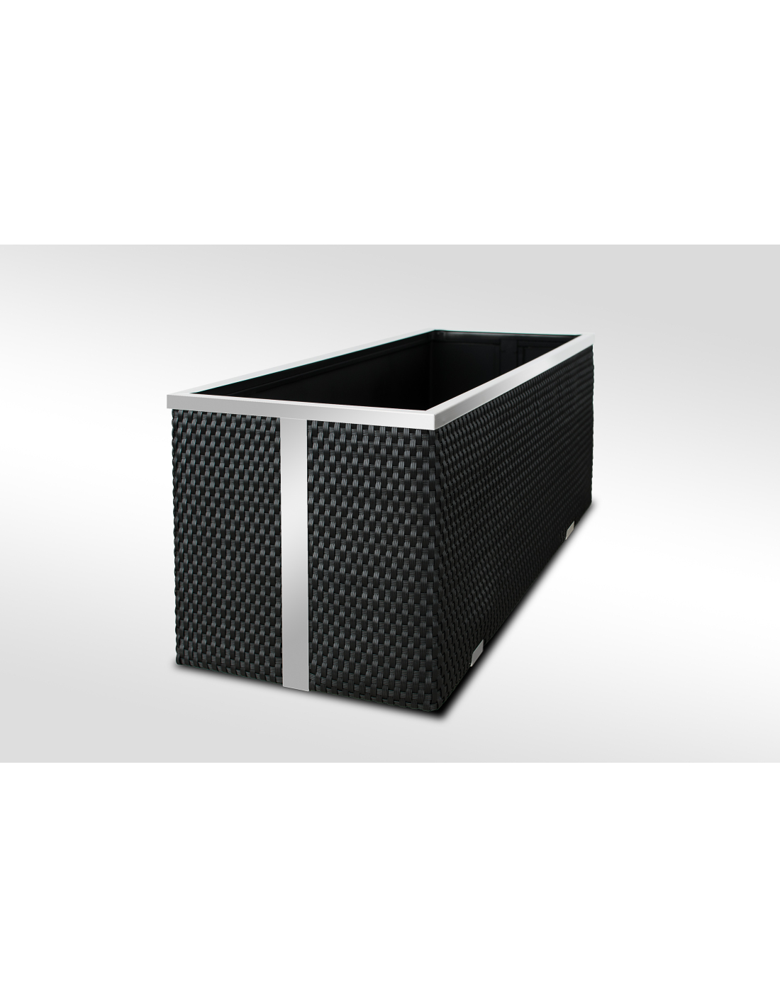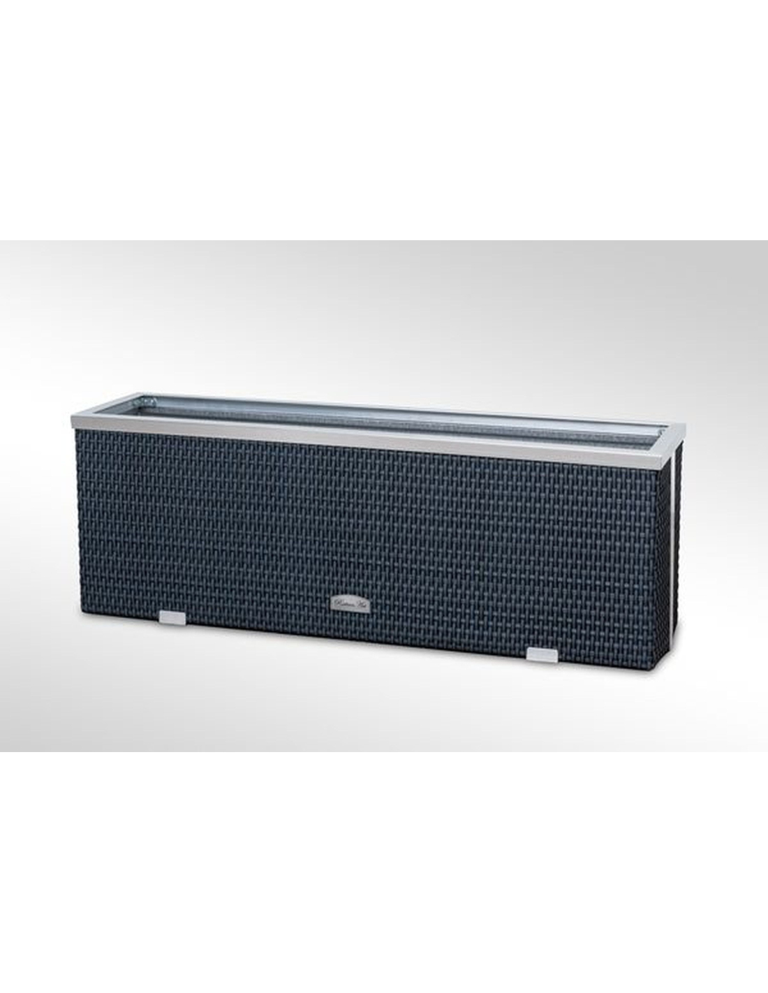 Das Innere des Pflanzkübels ist aus verzinktem Blech gefertigt, was für zusätzliche Stabilität und Langlebigkeit sorgt. Die dekorativen Leisten bestehen aus poliertem Aluminium und verleihen dem Produkt ein modernes und elegantes Aussehen.