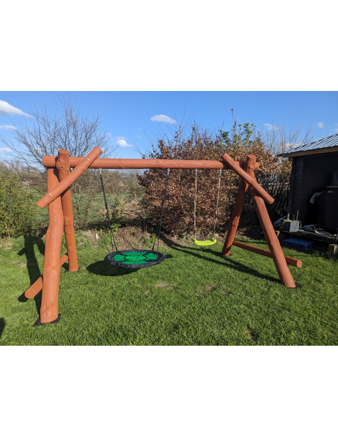 Diese robuste Gartenschaukel aus massivem, handgeschältem Kiefernholz besticht durch ihre natürliche, rustikale Form und hochwertige Verarbeitung. Das Holz wird mit wasserbasierten, umweltfreundlichen Imprägnierungen geschützt, die seine natürliche Struktur und Farbe bewahren. Dank ihrer massiven Bauweise ist die Schaukel äußerst stabil und sicher – sie benötigt keine Verankerung im Boden. Passt perfekt in jeden Garten und sorgt für viele Jahre Spielspaß und Entspannung im Freien.