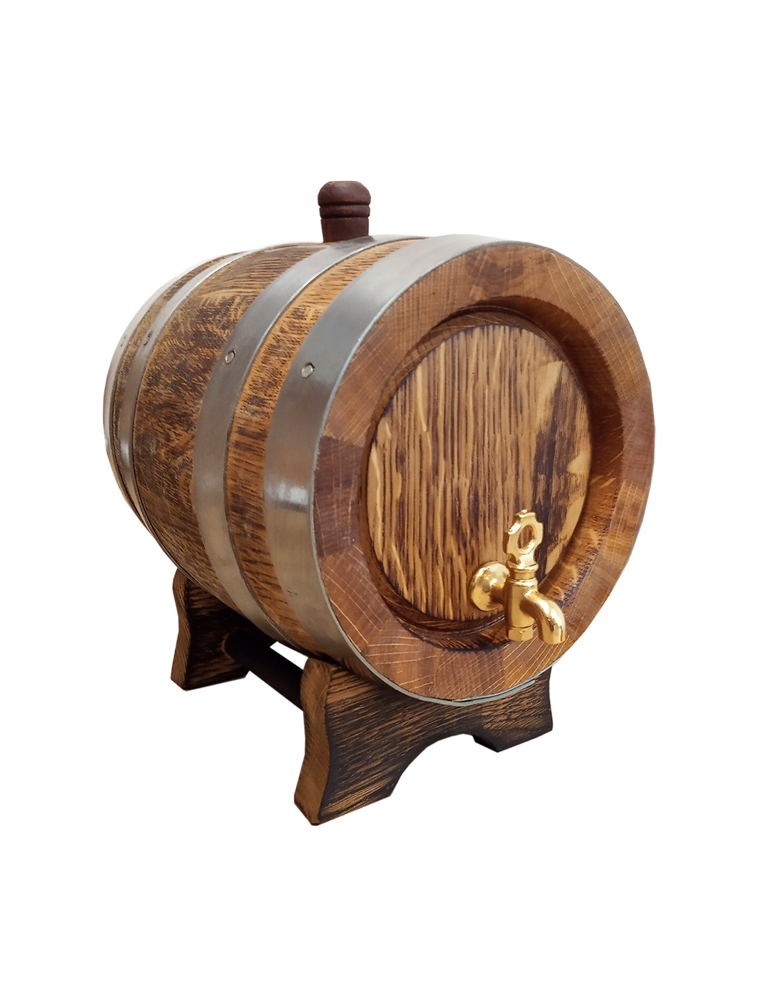 Eichenfass 2 Liter mit Zapfhahn aus Messing Fass Holzfass Weinfass Geflammt Dunkel