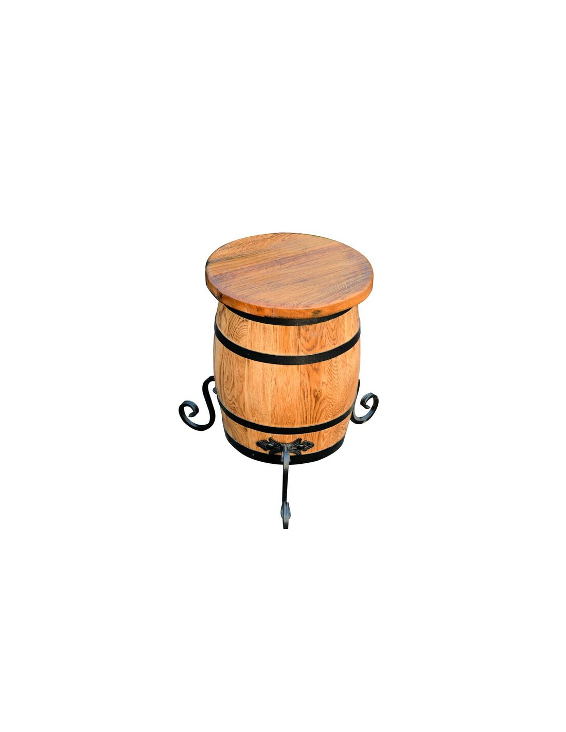 Hocker aus Eichenfass mit Metallbeschlag
