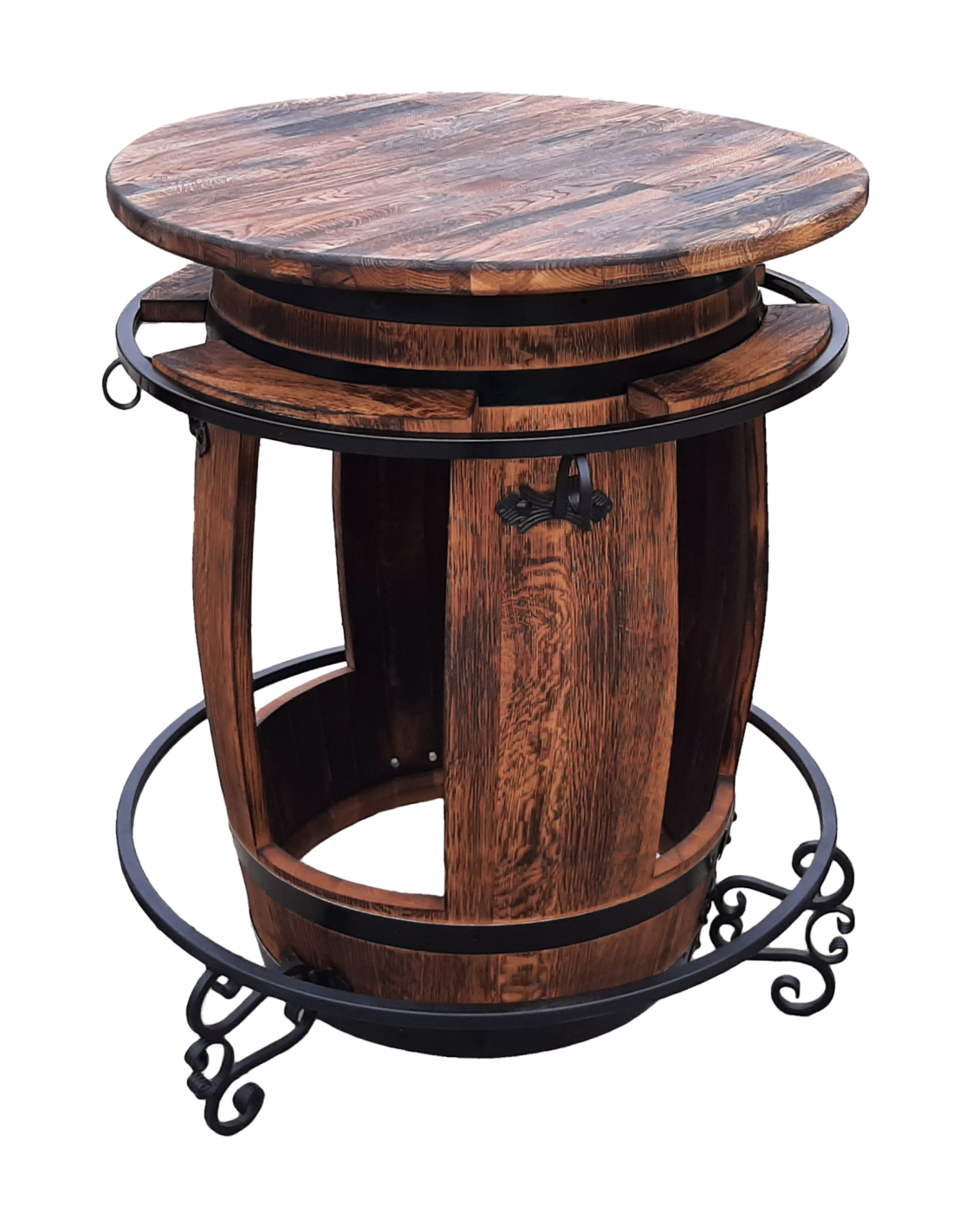 Ein einzigartiges Produkt mit Charakter. Jeder Tisch hat bereits seine eigene Geschichte, die mit dem Fass, aus dem er entstanden ist, und der Reifung des Weins darin verbunden ist. Die Fässer werden von erfahrenen Handwerkern sorgfältig restauriert: Die Außenflächen werden geschliffen, die Reifen neu vernietet und durch Pressen befestigt sowie das Holz gründlich mit Öl imprägniert.