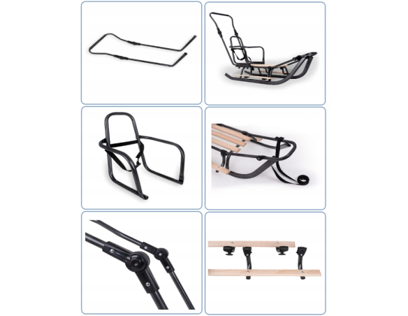 Die Schlitten sind mit einem leicht abnehmbaren Schubbügel und einer abnehmbaren Rückenlehne ausgestattet.