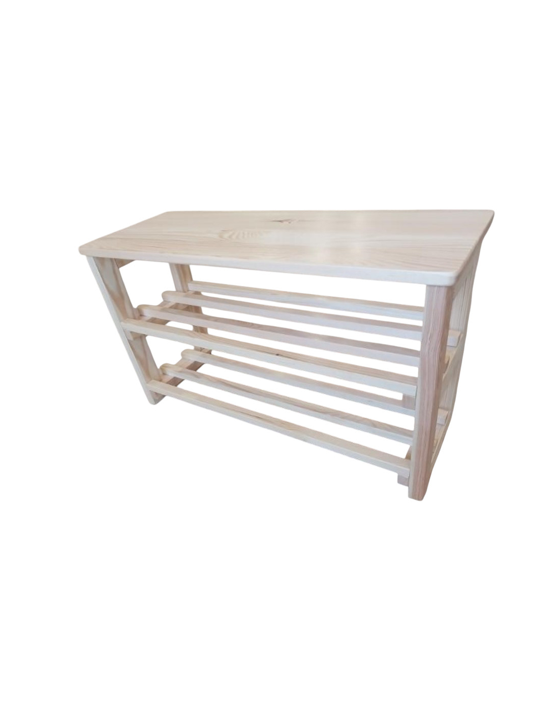 Dieses multifunktionale, ästhetische und langlebige Schuhregal mit Sitzfläche bietet Komfort und Ordnung in jedem Raum. Das lackierte Kiefernholz ist ein zeitloses Material, das Stabilität gewährleistet und sich hervorragend in verschiedene Wohnstile einfügt.