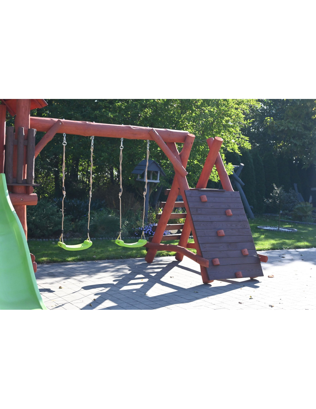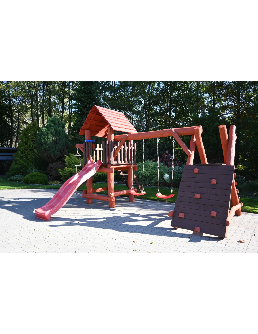 * Einige Spielturm-Sets können wir auf Wunsch anpassen. Zum Beispiel können die Position des Turms oder der Rutsche (linke oder rechte Seite) vertauscht werden, sodass der Spielturm spiegelverkehrt im Vergleich zum Angebot ausgeführt wird.