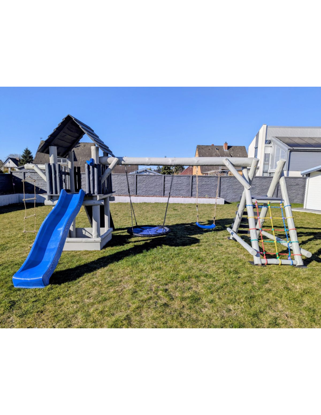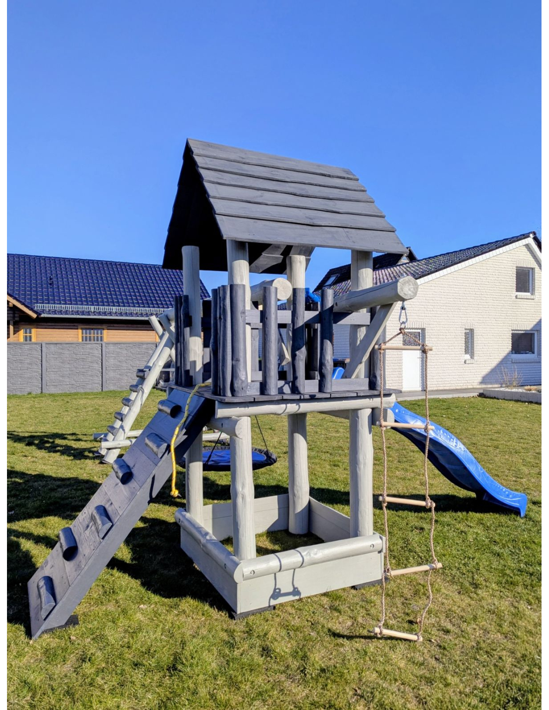 *Neuheit! Ab sofort ist jeder Spielturm und jede Gartenschaukel auch in der neuen Farbvariante ASCHGRAU + ANTHRAZIT erhältlich. Der Aufpreis für diese Farbvariante beträgt 50 Euro. Fragen Sie auch nach weiteren Farbvarianten.