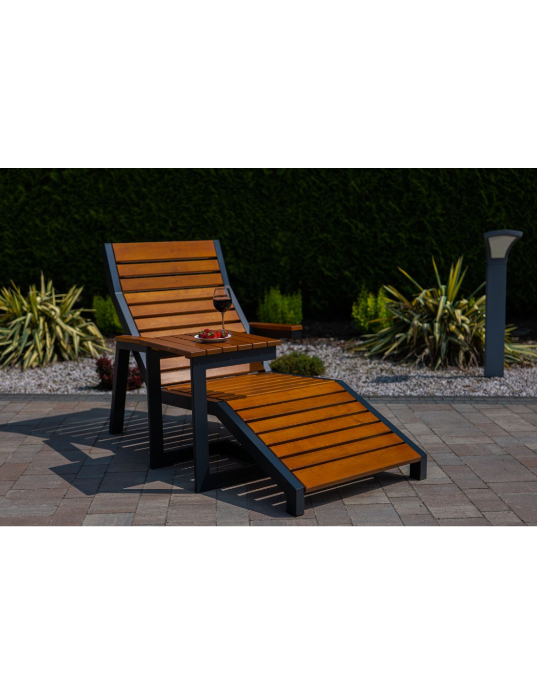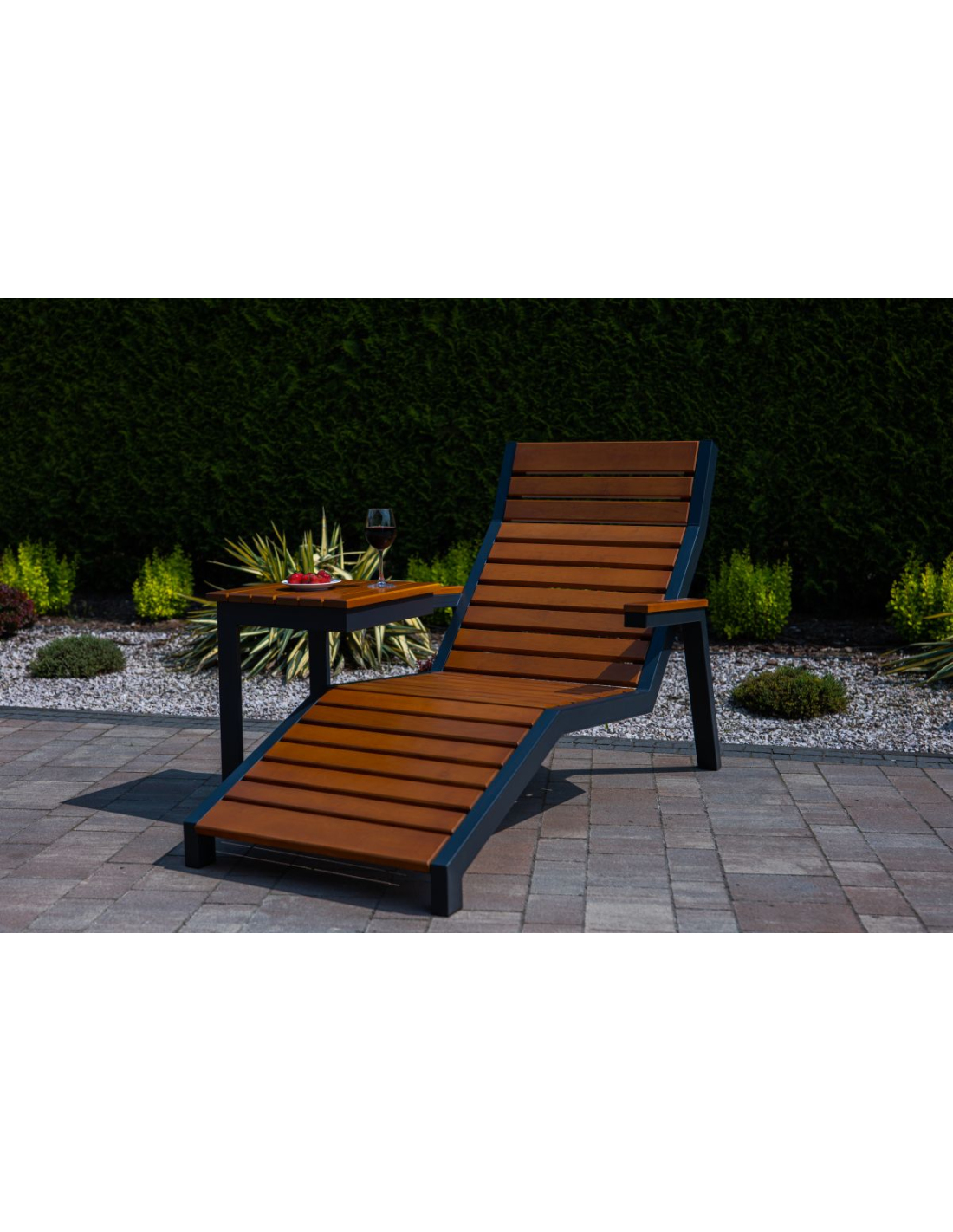 Gartenliege aus hochwertigem Holz und Metall + Beistelltisch