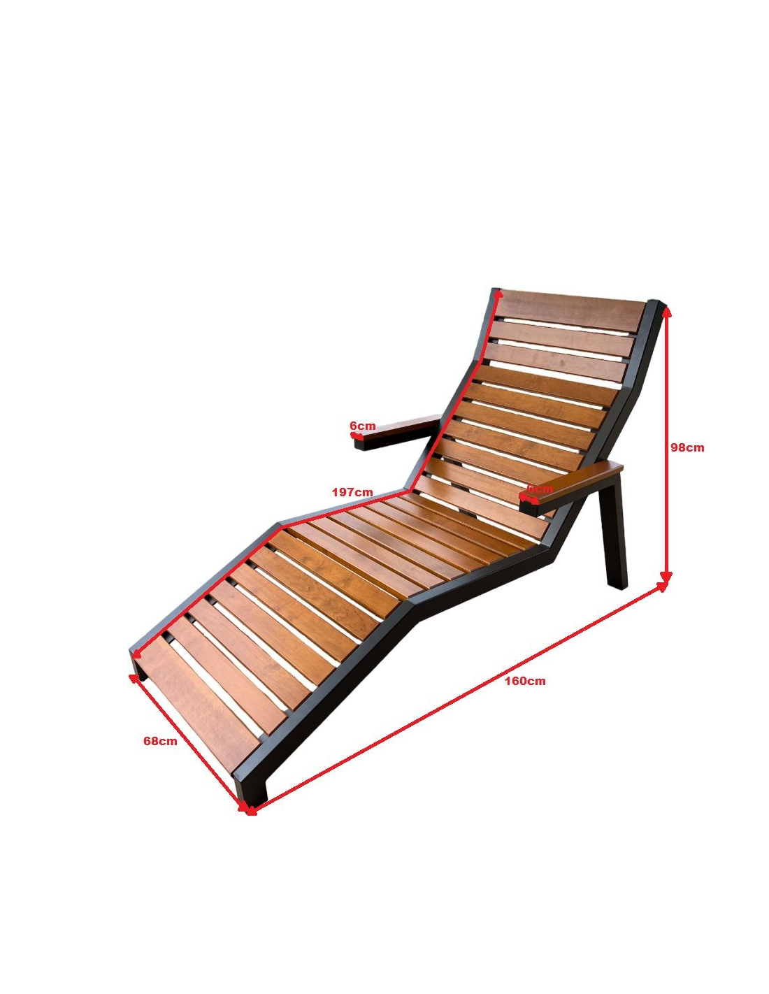 Diese elegante Gartenliege besteht aus sorgfältig gefertigten Holzleisten aus Erlenholz. Die Holzoberfläche wurde zweimal mit einem speziellen Lacklasurverfahren beschichtet (SIGMA COATINGS - Holzlasur), wodurch sie wetterfest und langlebig ist. Sie können zwischen den Farben Walnuss, Palisander und Kiefer wählen, um die Liege perfekt an Ihre Umgebung anzupassen. Der Rahmen ist aus robustem Metall gefertigt und wurde schwarz pulverbeschichtet, was ihn korrosionsbeständig und modern macht.