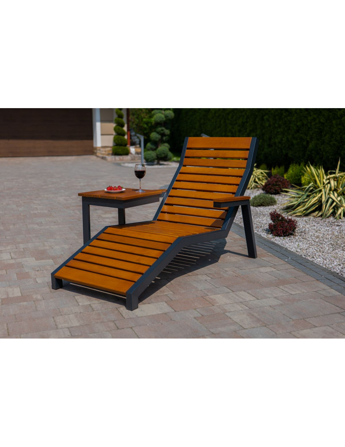 Gartenliege aus Erlenholz + Metall Sonnenliege Relaxliege Wetterfest