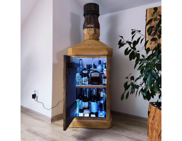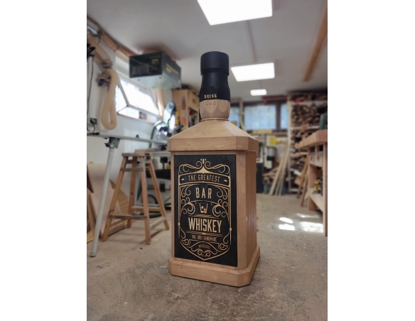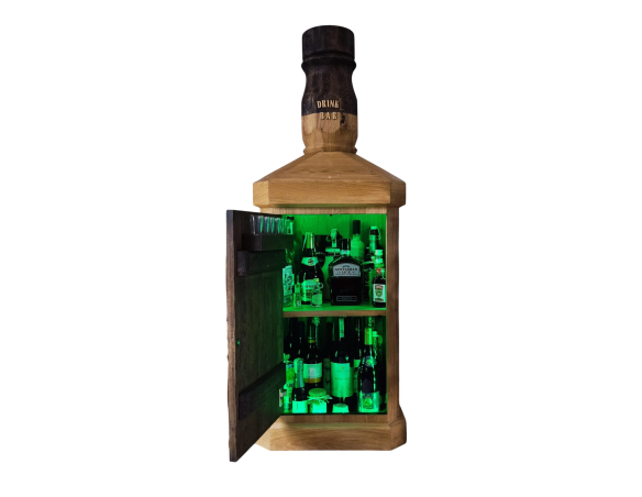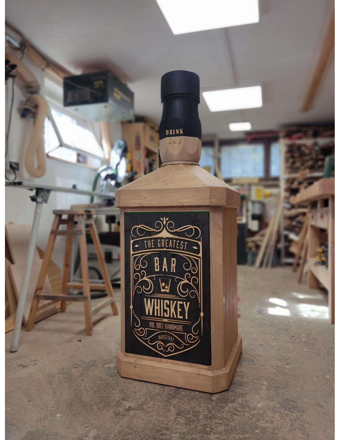 Einzigartige Bar in Form einer Whiskeyflasche – die perfekte Verbindung von Handwerkskunst, Kunst und Natur.