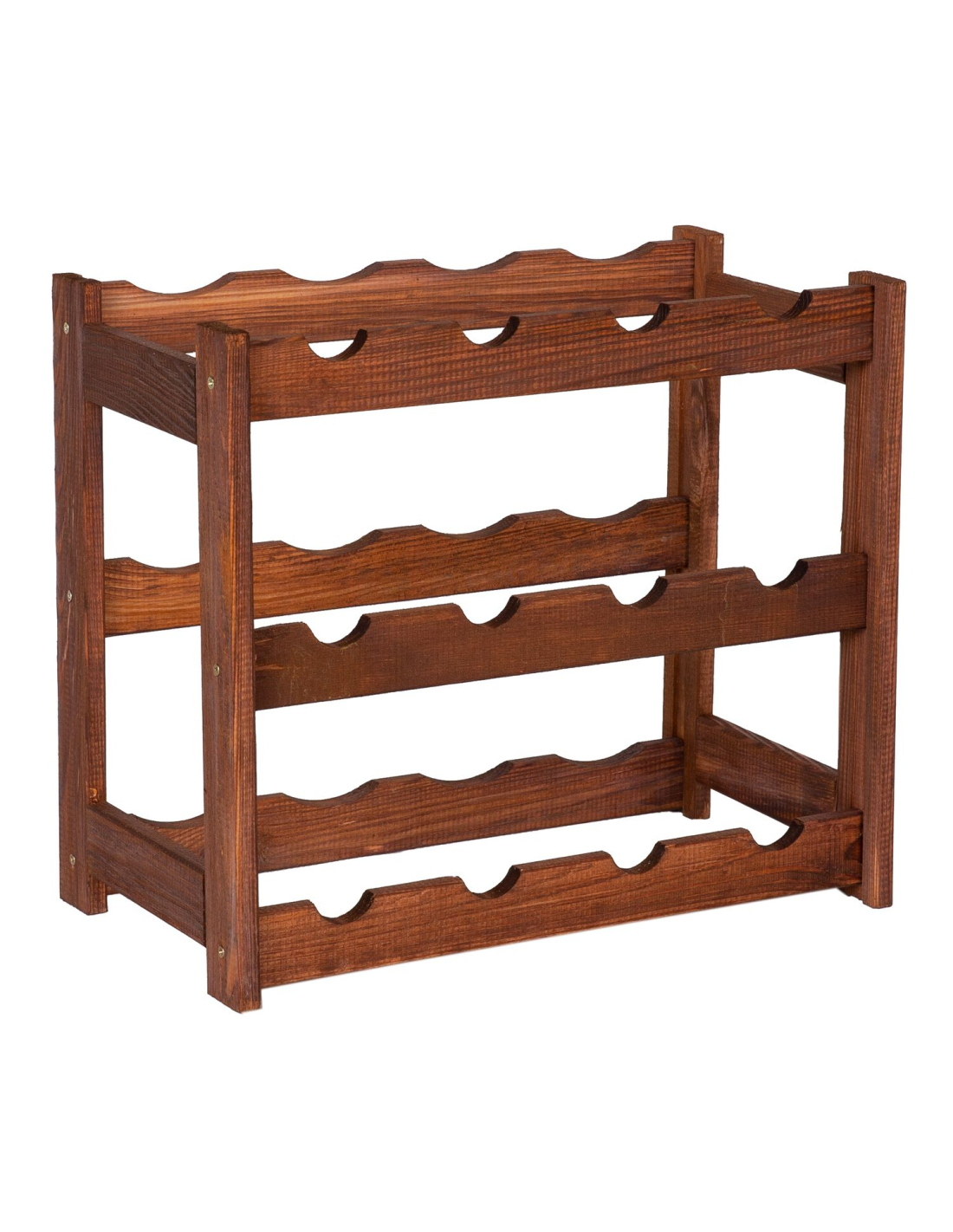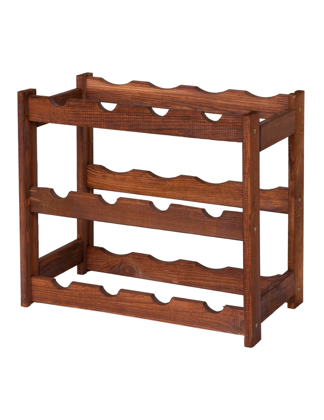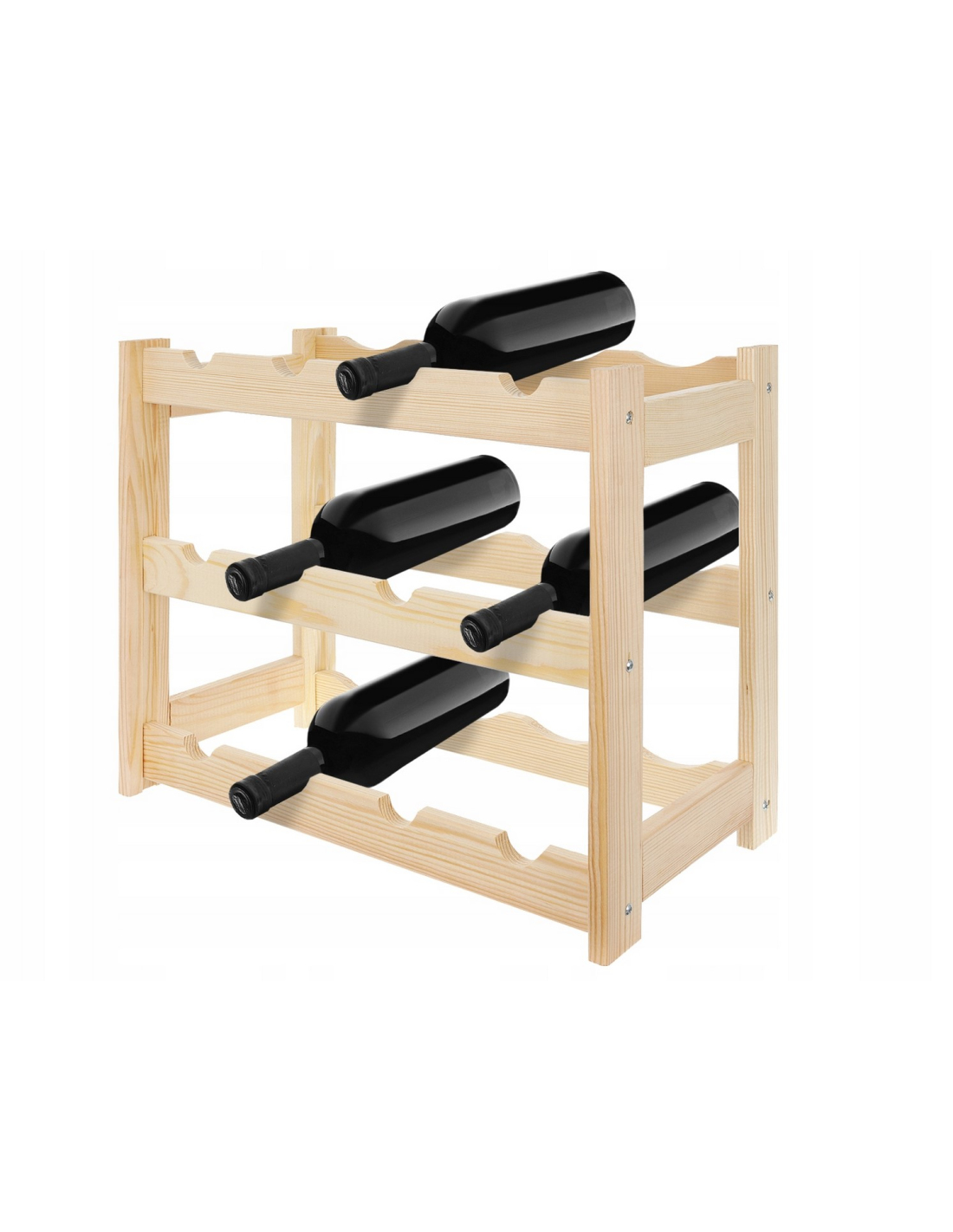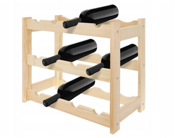 Ein Weinregal im klassischen Stil, ideal für jeden Weinliebhaber. Es präsentiert Ihre Lieblingsweinsammlung auf elegante Weise. Aufgrund seiner kompakten Größe und Funktionalität findet das Regal in jedem Zuhause, Keller, in der Garage, im Weinladen oder Restaurant seinen Platz. Die natürliche Holzkonstruktion passt zu jeder Einrichtung. Eine perfekte Geschenkidee für Weinliebhaber. Es verfügt über 3 Ebenen und bietet Platz für jeweils 4 Flaschen pro Ebene. Geeignet zur Aufbewahrung von Standard-Weinflaschen mit einem Fassungsvermögen von 750 ml.